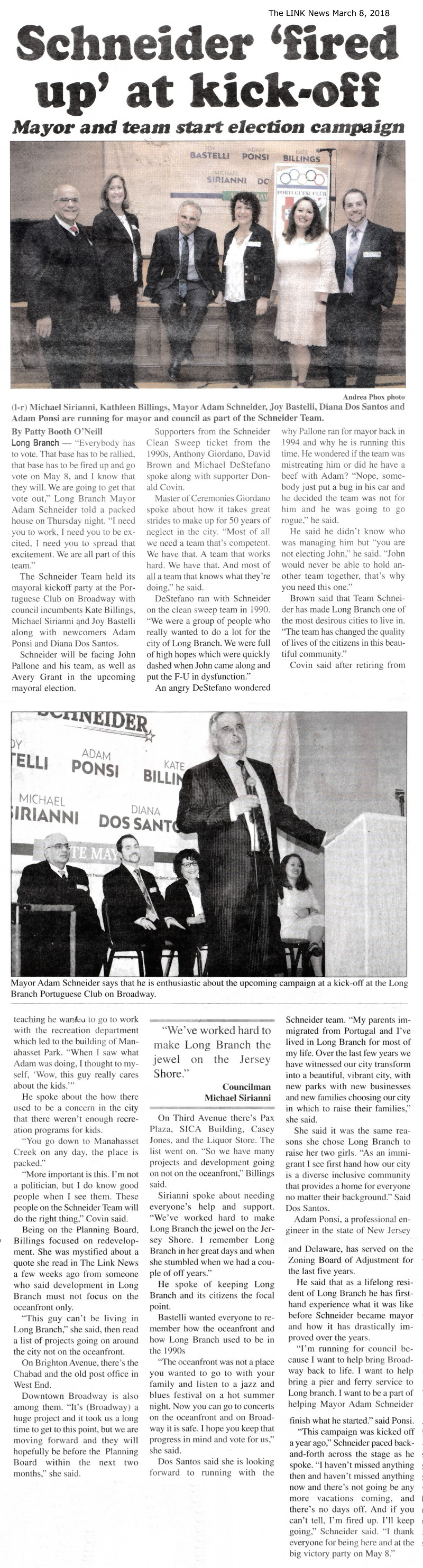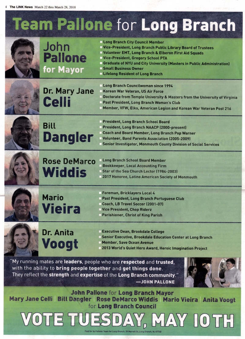 Pallone Team advertisement from Link News for the mayoral and council election May 8, 2018